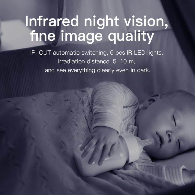 - Clear Day and Night: Enjoy crisp HD video quality for detailed, reliable footage. With built-in infrared night vision, the camera captures clear images even in low light or complete darkness, ensuring continuous monitoring and peace of mind at all hours.